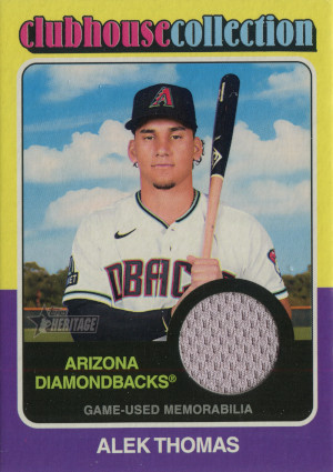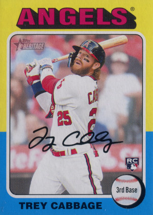 I purchased this 20-card 2024 Topps Heritage Baseball Retail Fat Pack for $6.99. It's guaranteed to contain a relic card. This year's design is based on 1975 Topps Baseball. It's considered by many to be one of the best Topps flagship designs of all time because of its innovative printed signatures.